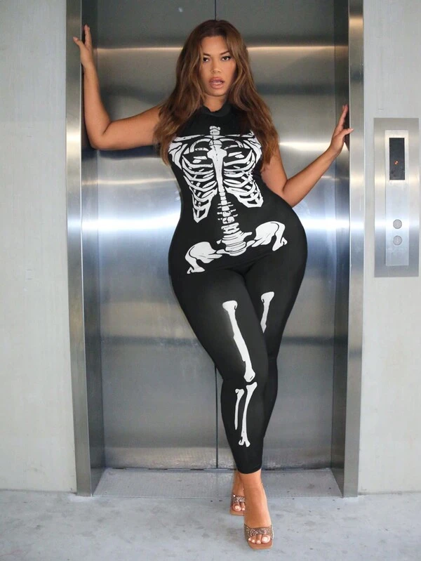 SHEIN SXY Plus Skeleton Print Unitard Jumpsuit