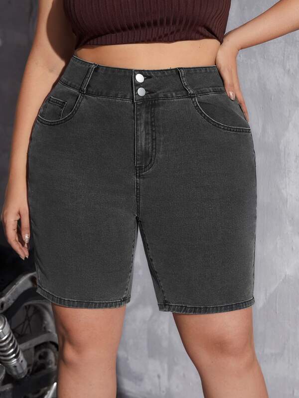 Plus Slant Pocket Denim Shorts