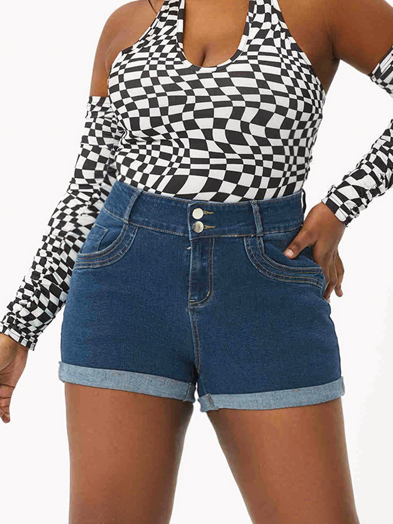 Plus Slant Pocket Rolled Hem Denim Shorts