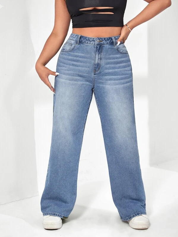 SHEIN EZwear Plus Slant Pocket Wide Leg Jeans