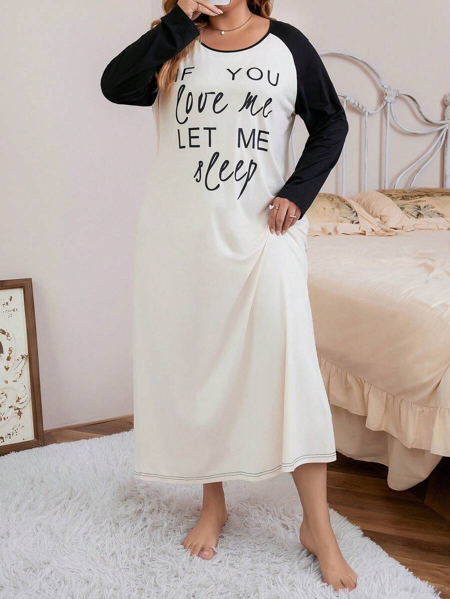 Plus Slogan Graphic Contrast Raglan Sleeve Nightdress