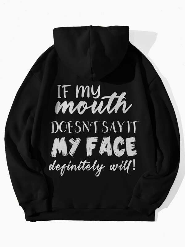 Plus Slogan Graphic Thermal Lined Drawstring Hoodie
