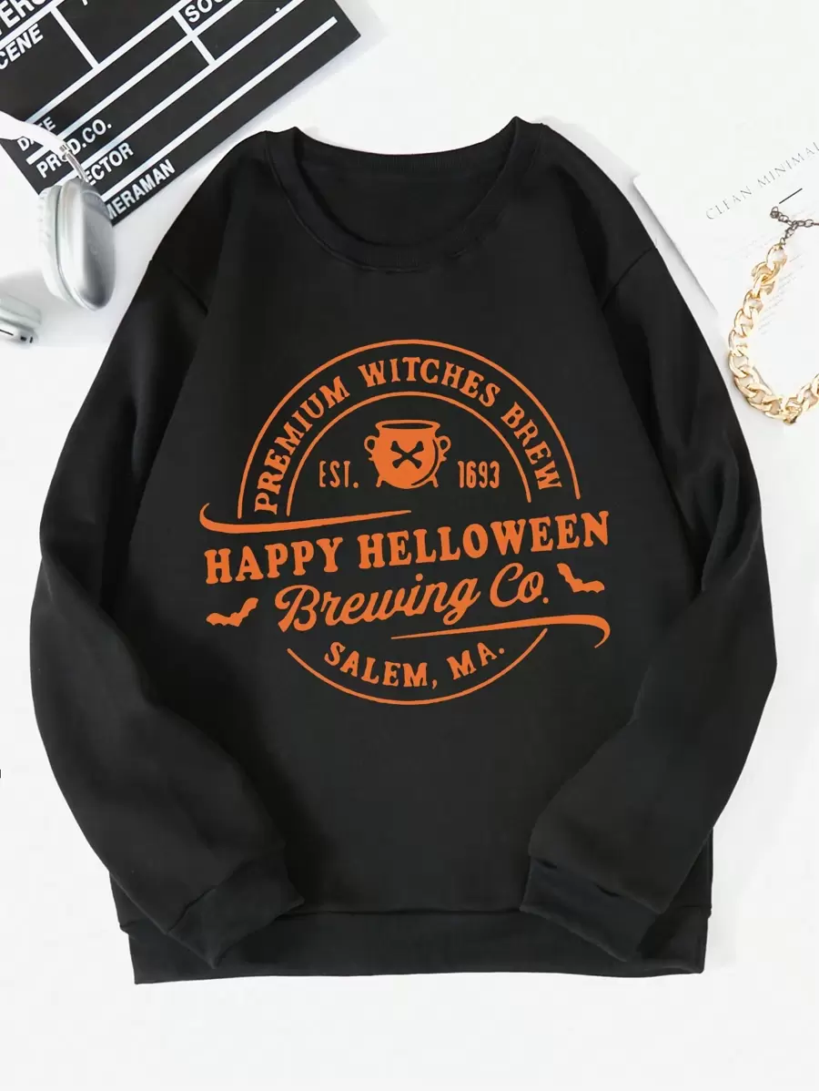 Plus Slogan Graphic Thermal Lined Sweatshirt