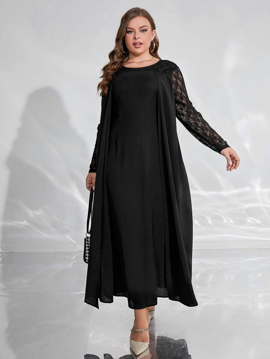 SHEIN Modely Plus Solid Contrast Lace Dress