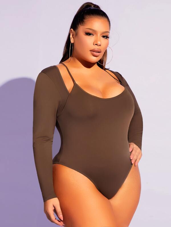 SHEIN SXY Plus Solid Cut Out Slim Bodysuit