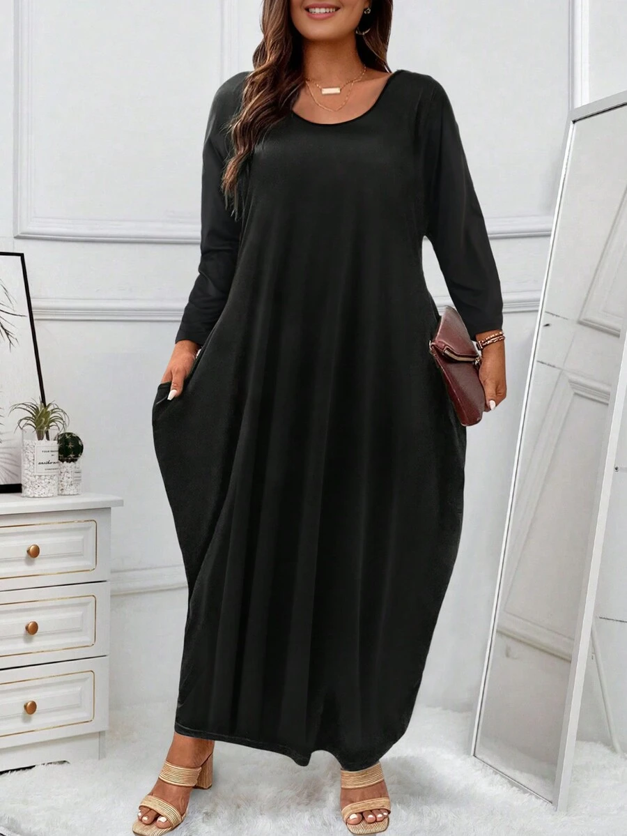 Plus Solid Hidden Pocket Maxi Tee Dress