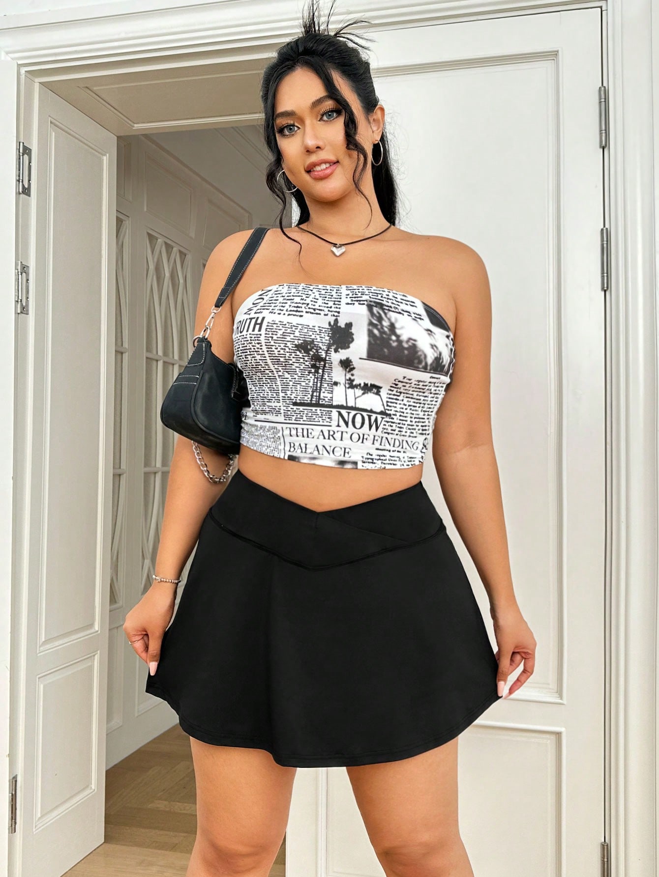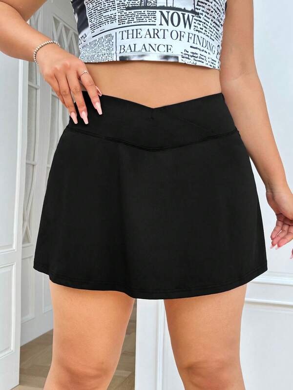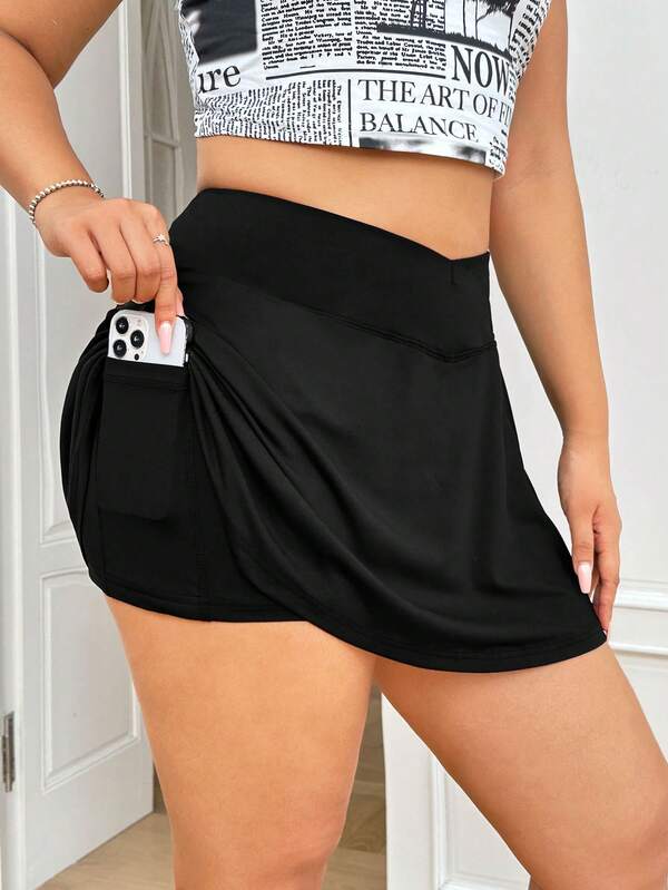 SHEIN EZwear Plus Solid High Waist Skirt With Phone Pocket