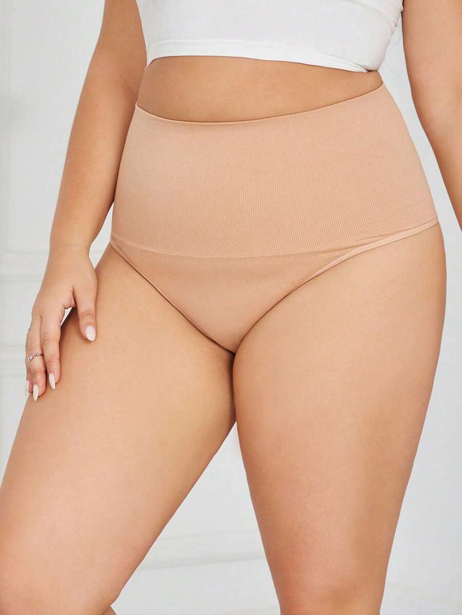Plus Solid High Waisted Shapewear Thong