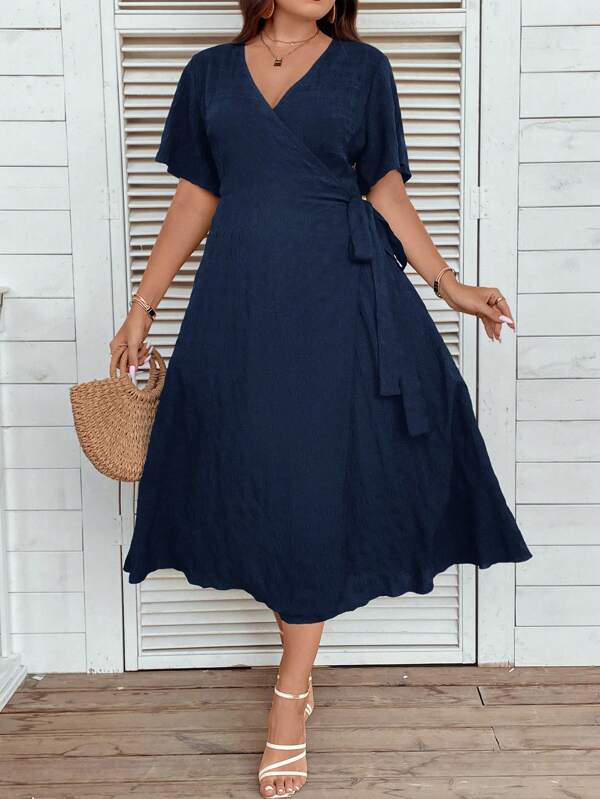 SHEIN LUNE Plus Solid Knot Side Wrap Dress