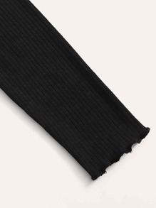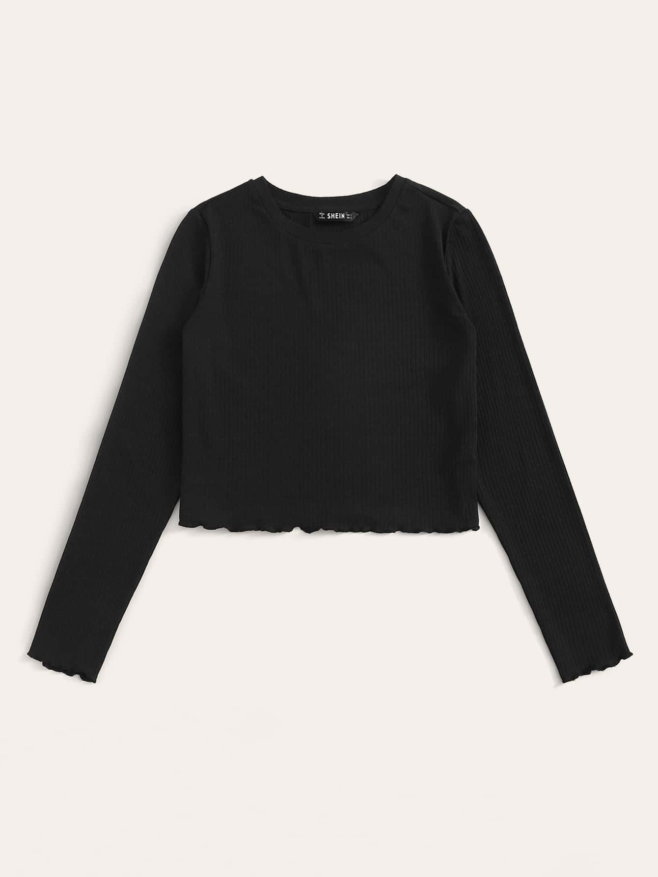 SHEIN EZwear Plus Solid Lettuce Trim Rib-knit Top