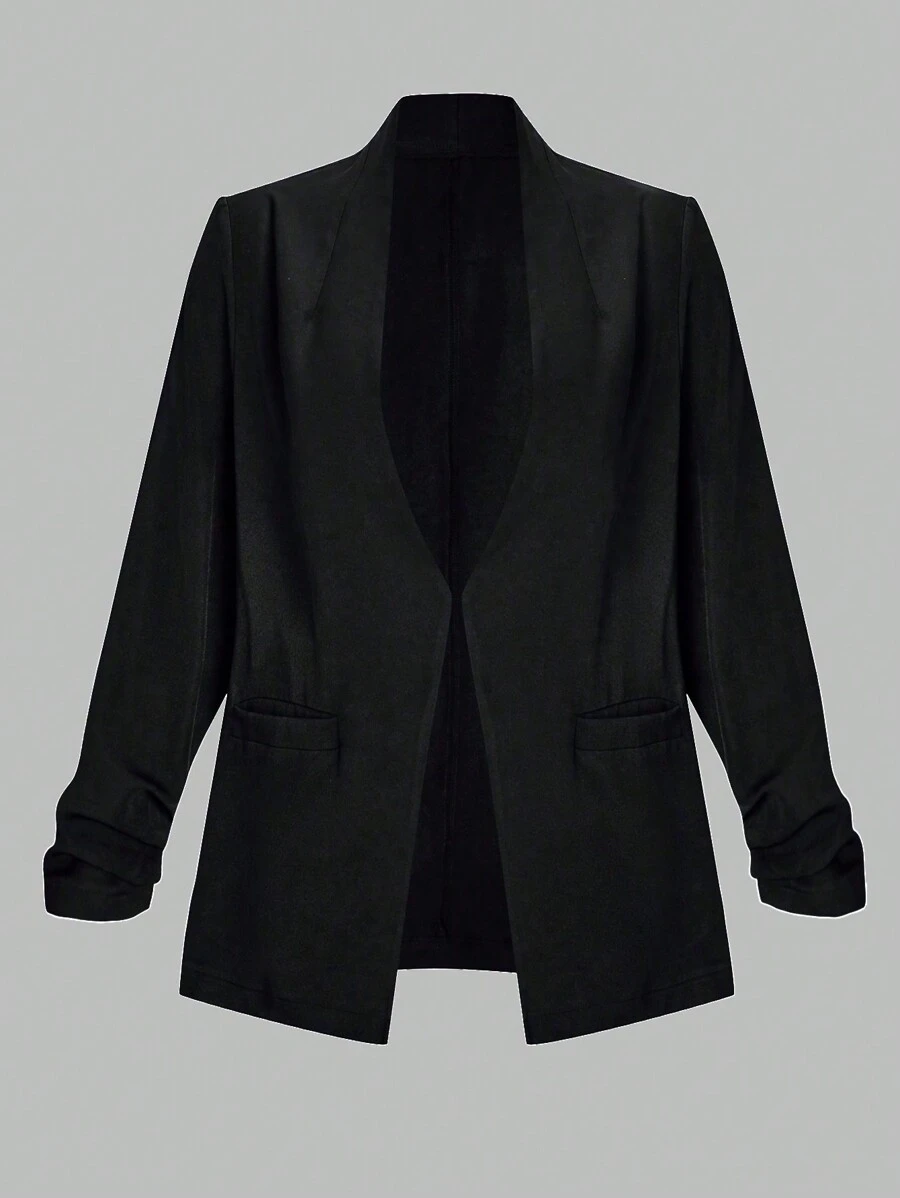 SHEIN LUNE Plus Solid Open Front Pocket Detail Blazer