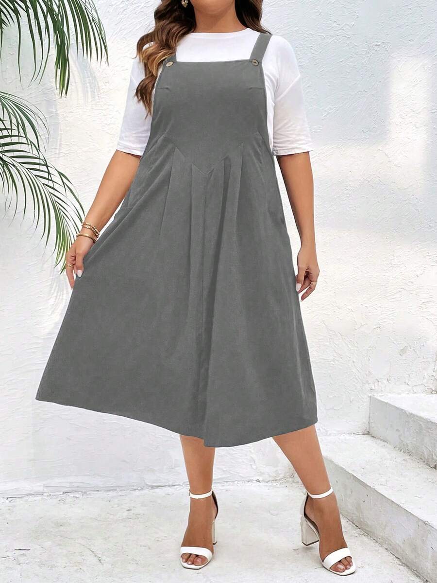 SHEIN LUNE Plus Solid Overall Dress Without Tee
