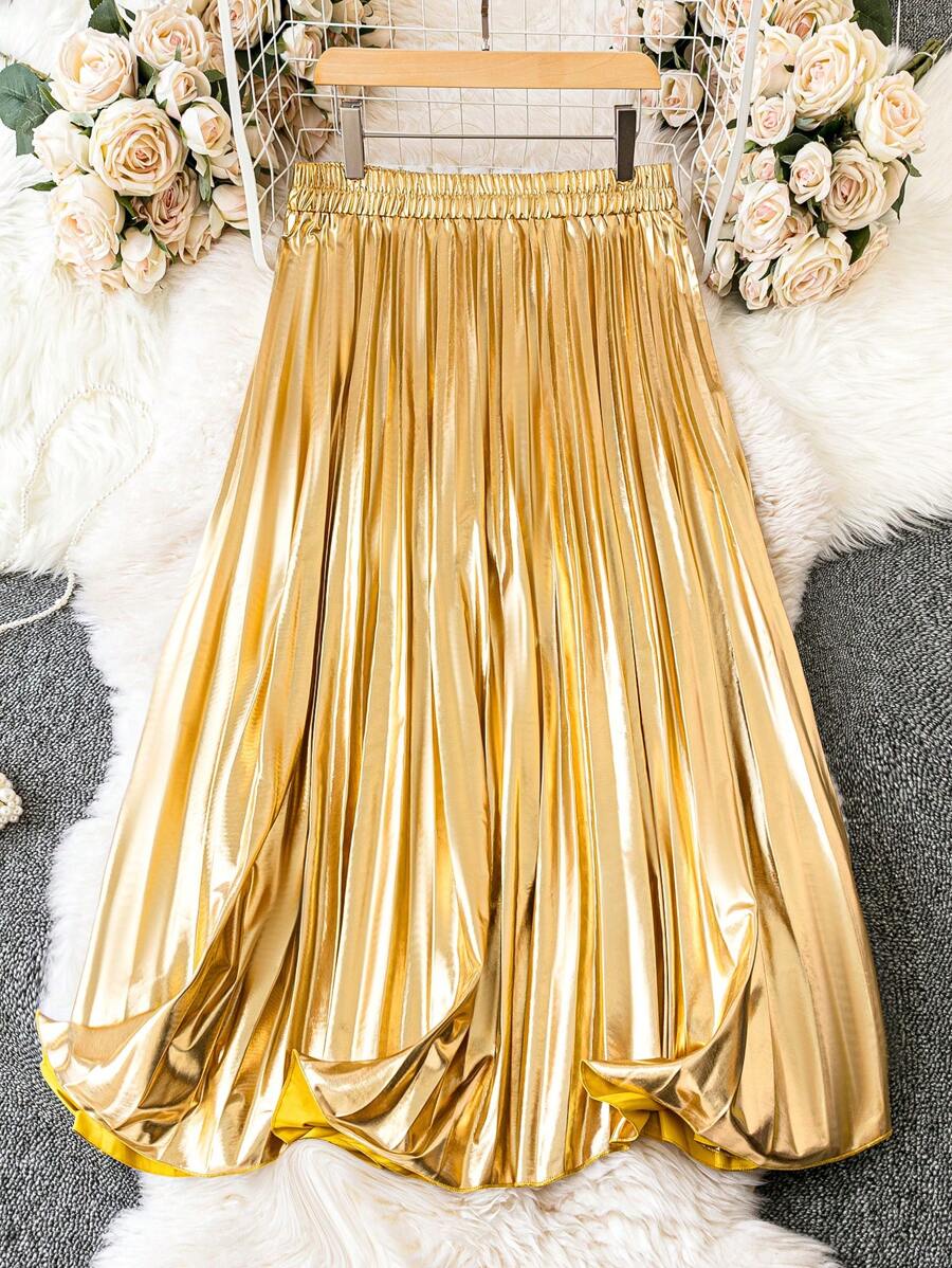 Plus Solid Pleated Skirt