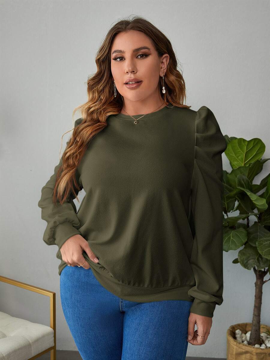 SHEIN Clasi Plus Solid Puff Sleeve Sweatshirt