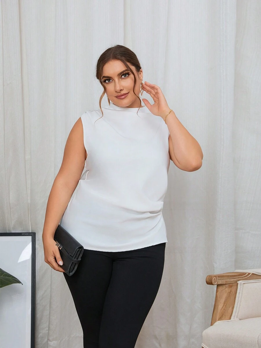 SHEIN Privé Plus Solid Ruched Side Blouse