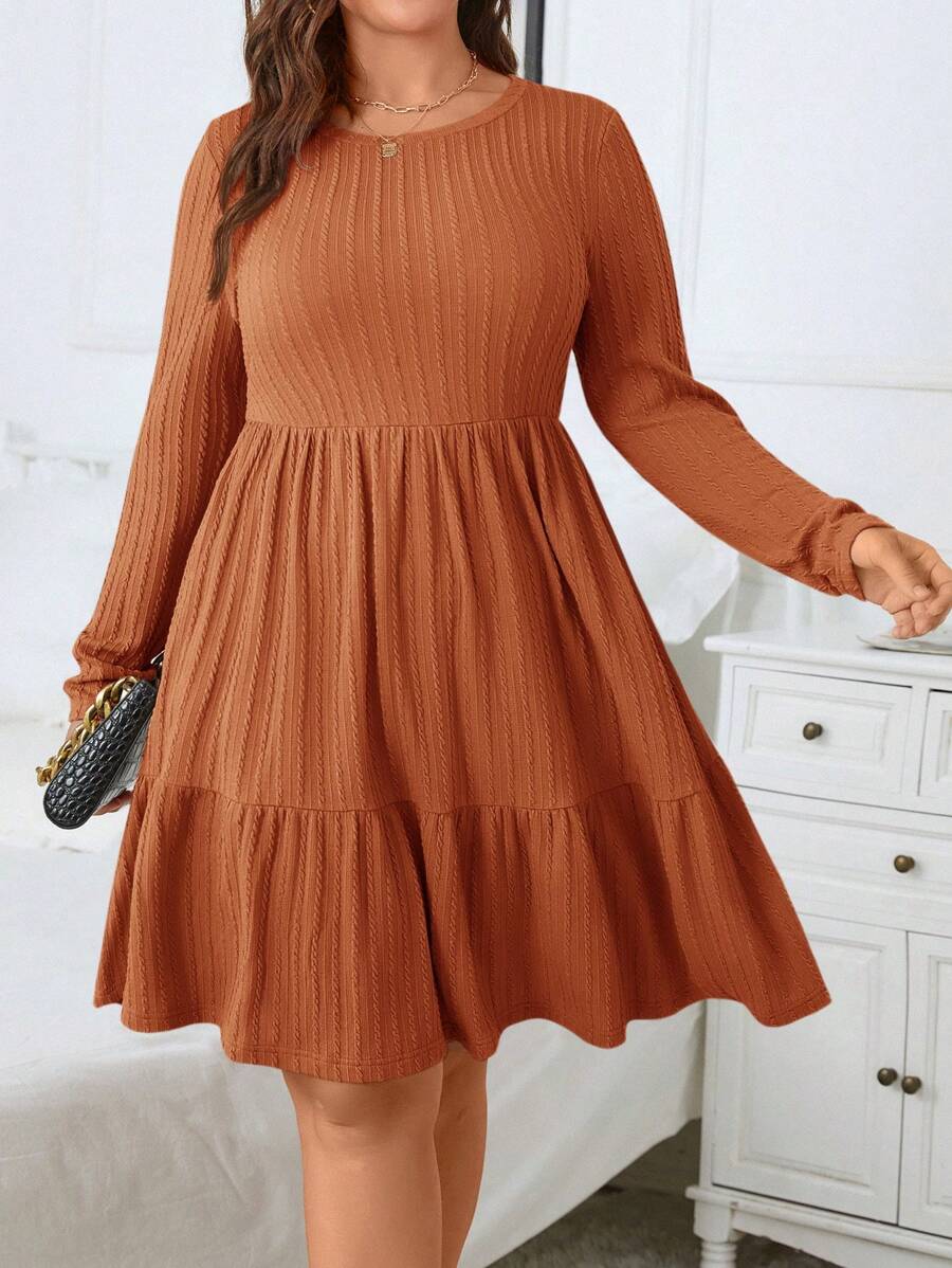 SHEIN Clasi Plus Solid Ruffle Hem Dress