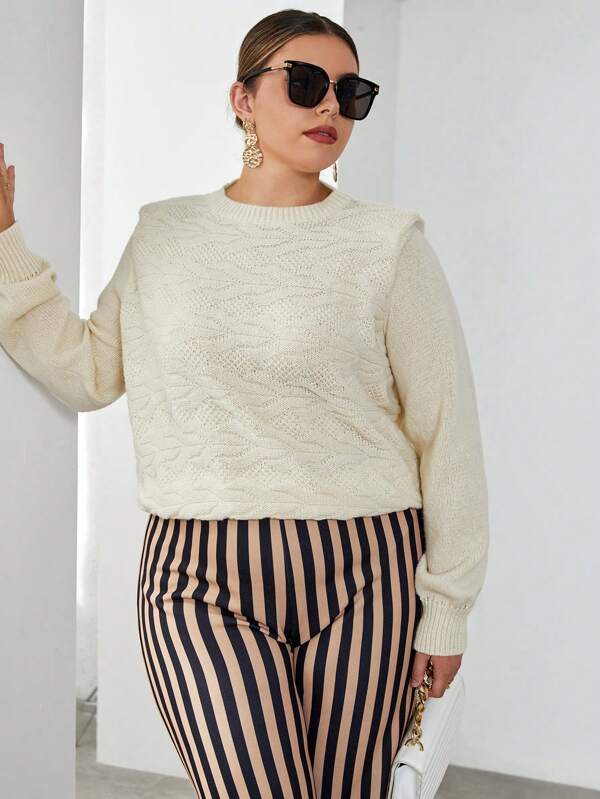 SHEIN Privé Plus Solid Shoulder Pad Sweater