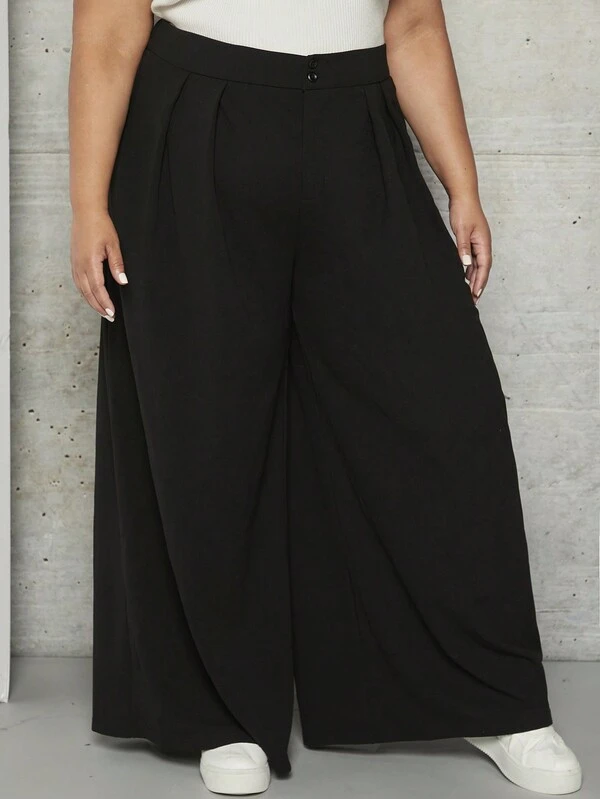 SHEIN CURVE+ Plus Solid Wide Leg Pants