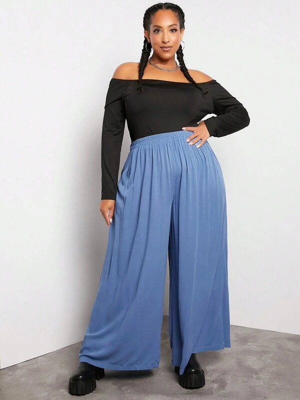 SHEIN CURVE+ Plus Solid Wide Leg Pants