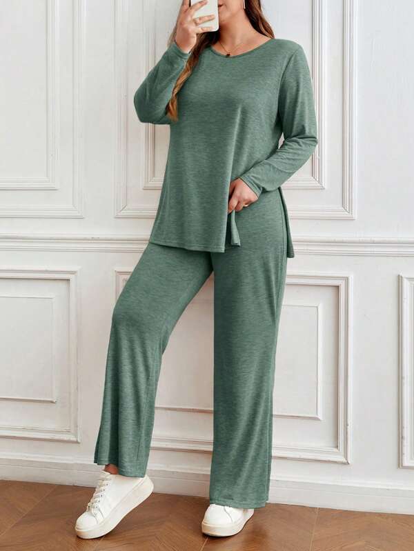 SHEIN Frenchy Plus Split Hem Tee & Pants