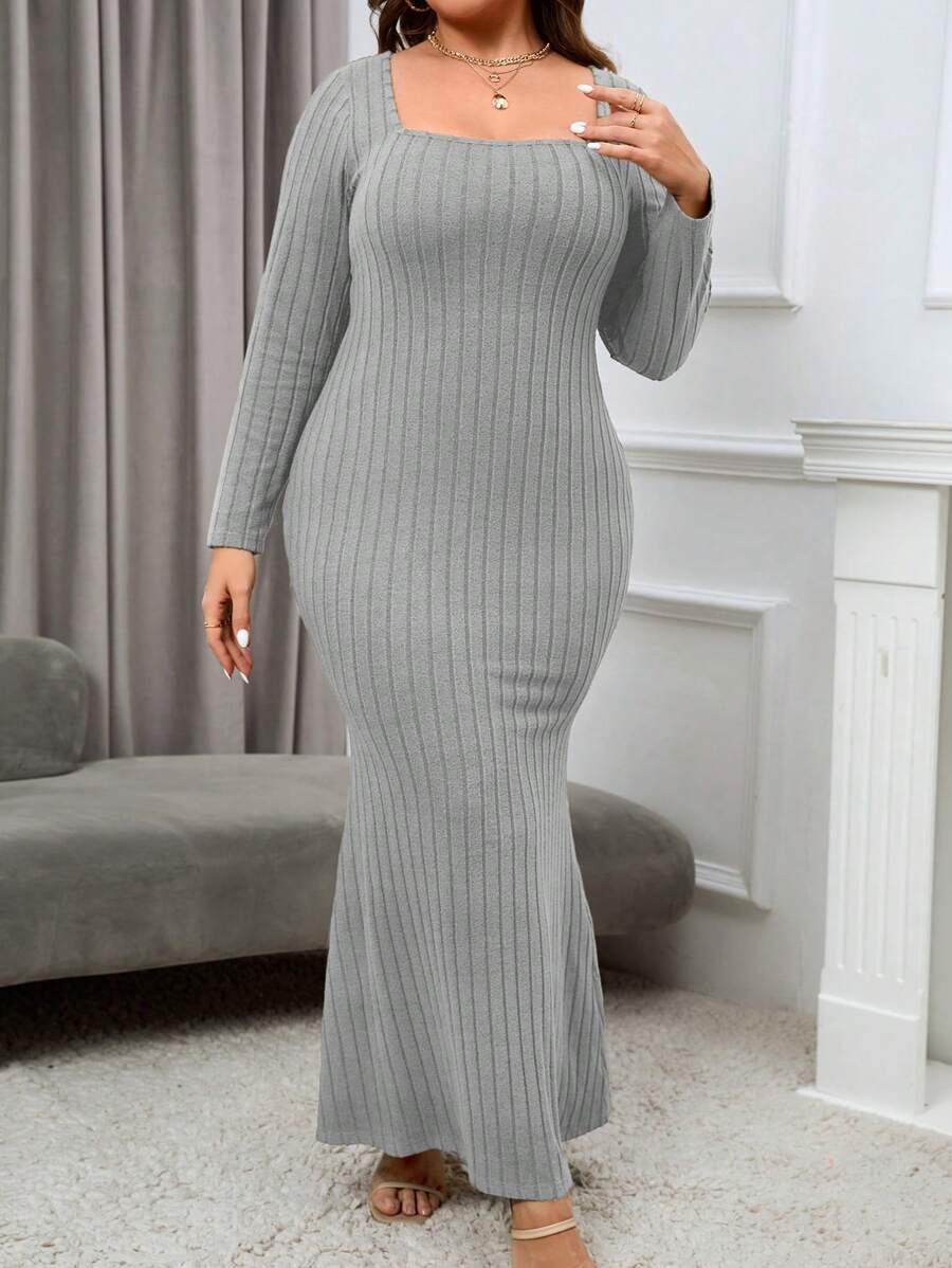 SHEIN Privé Plus Square Neck Mermaid Hem Dress