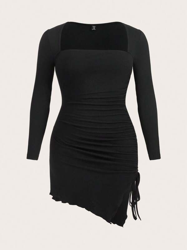 SHEIN EZwear Plus Square Neck Ruched Side Asymmetrical Hem Bodycon Dress