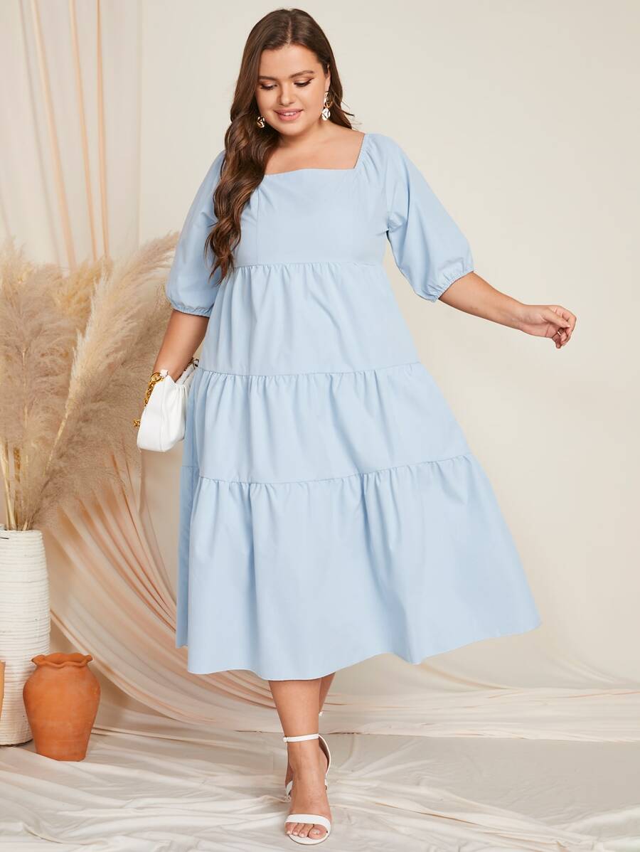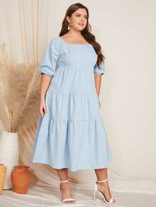 SHEIN Mulvari Plus Square Neck Ruffle Hem Dress