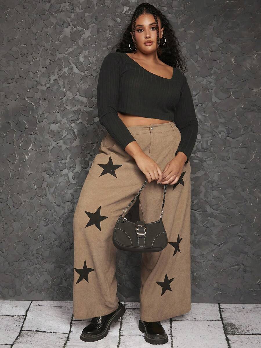 SHEIN CURVE+ Plus Star Print Wide Leg Pants