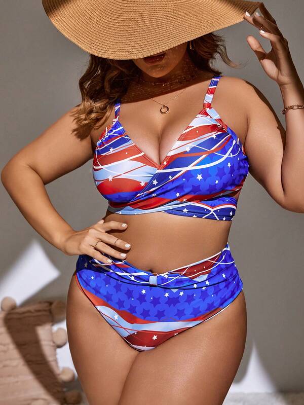 Plus Star Print Wrap Bikini Swimsuit