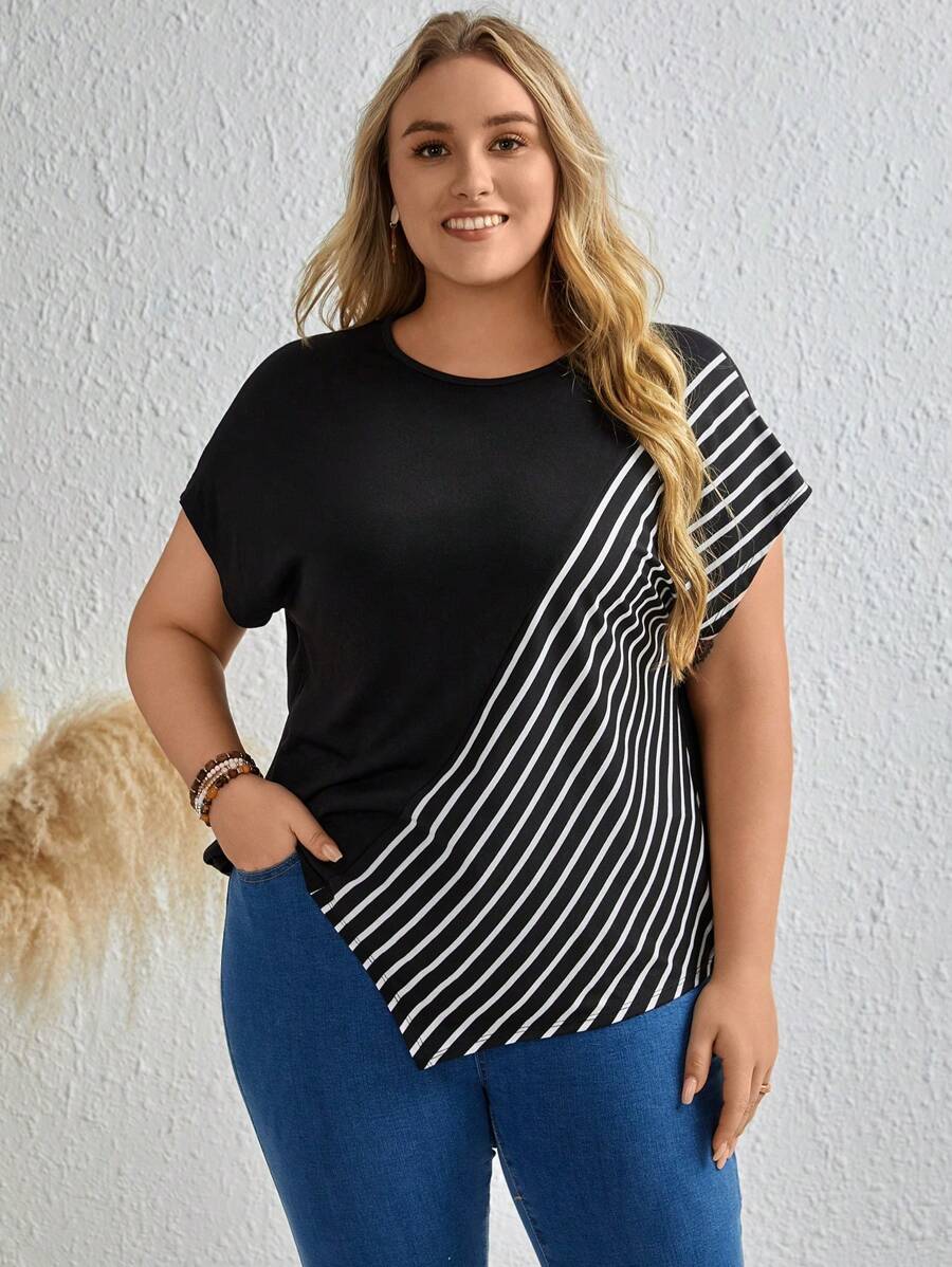 EMERY ROSE Plus Striped Batwing Sleeve Tee