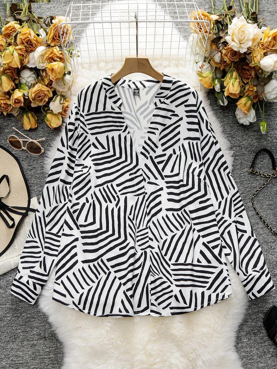 SHEIN LUNE Plus Striped Print Button Front Shirt