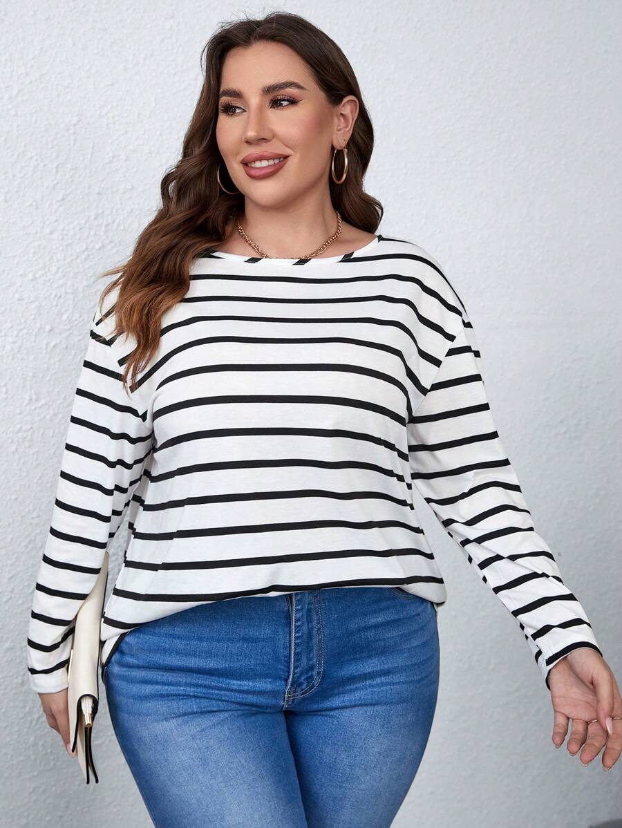 SHEIN LUNE Plus Striped Print Drop Shoulder Tee