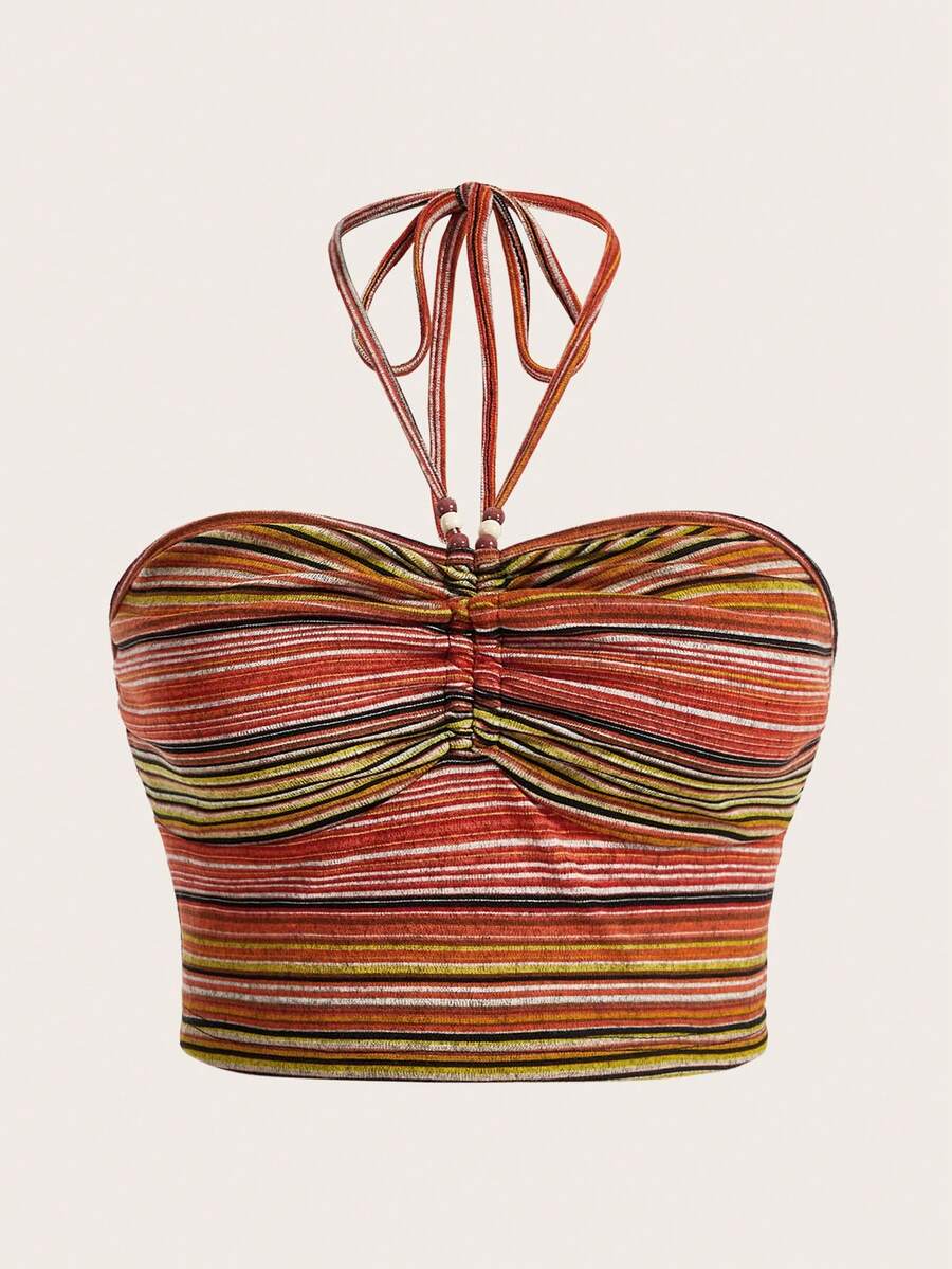 ROMWE Fairycore Plus Striped Print Halter Top