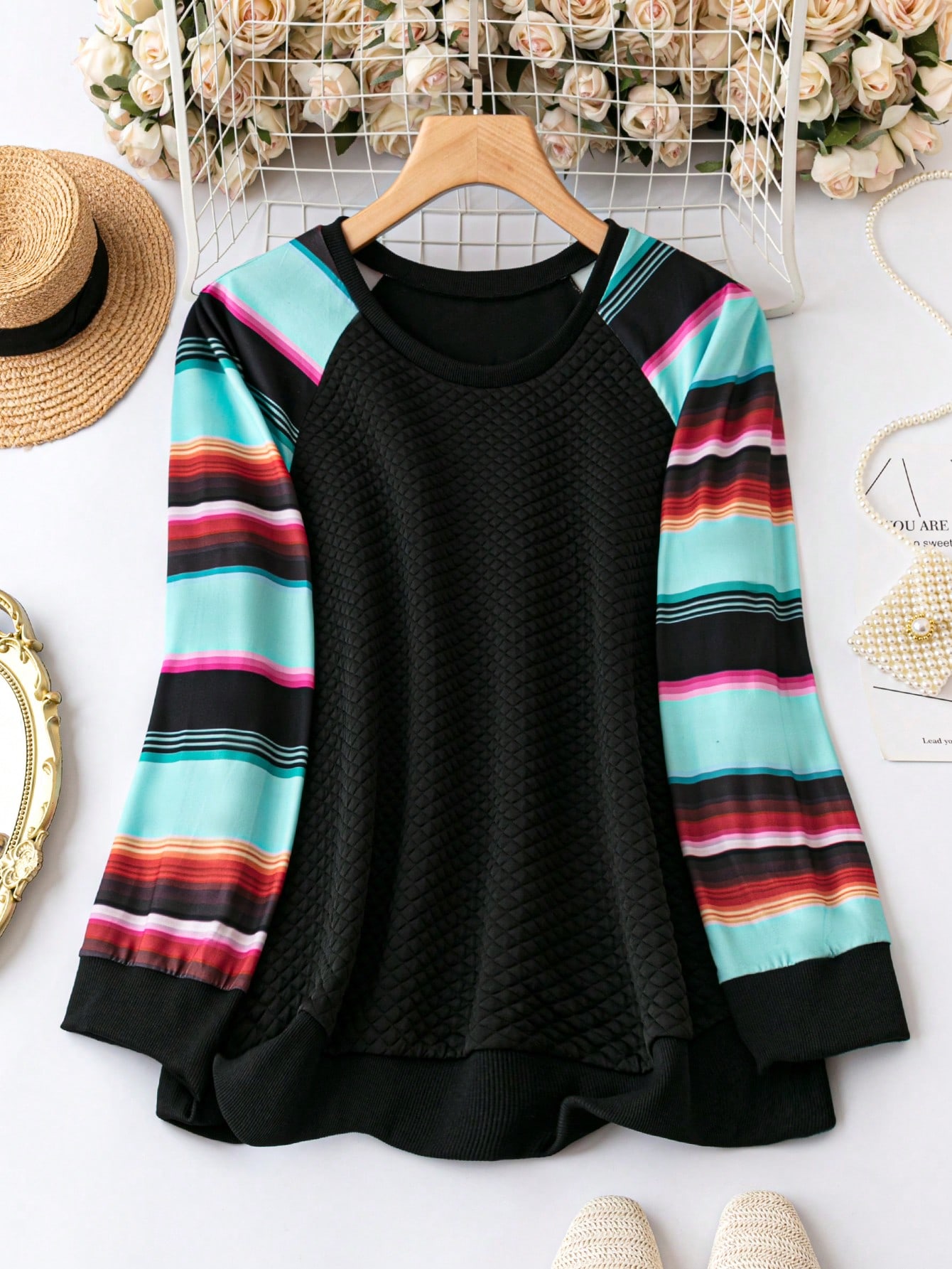 SHEIN LUNE Plus Striped Raglan Sleeve Sweatshirt