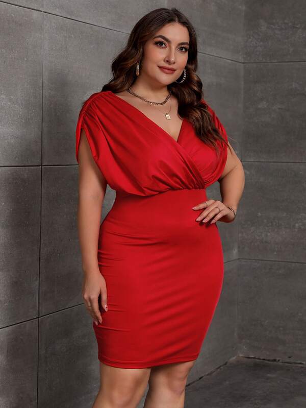 SHEIN Unity Plus Surplice Neck Batwing Sleeve Bodycon Dress