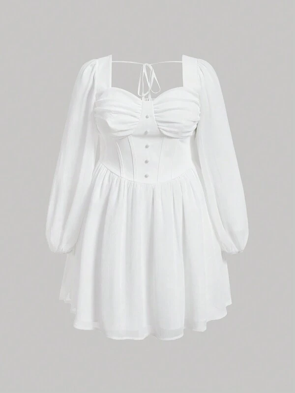 SHEIN MOD Plus Sweetheart Neck Lantern Sleeve Dress