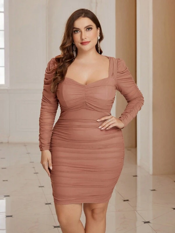 SHEIN Belle Plus Sweetheart Neck Ruched Mesh Bodycon Dress