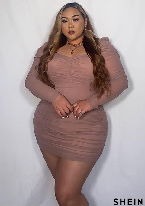 SHEIN Belle Plus Sweetheart Neck Ruched Mesh Bodycon Dress