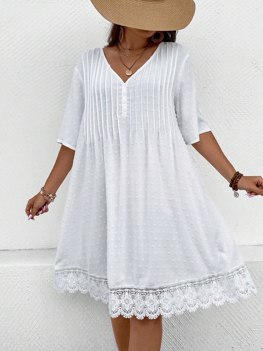 SHEIN LUNE Plus Swiss Dot Contrast Lace Dress