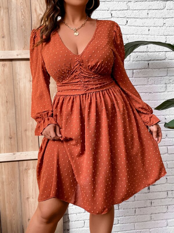 SHEIN Frenchy Plus Swiss Dot Ruched A-line Dress
