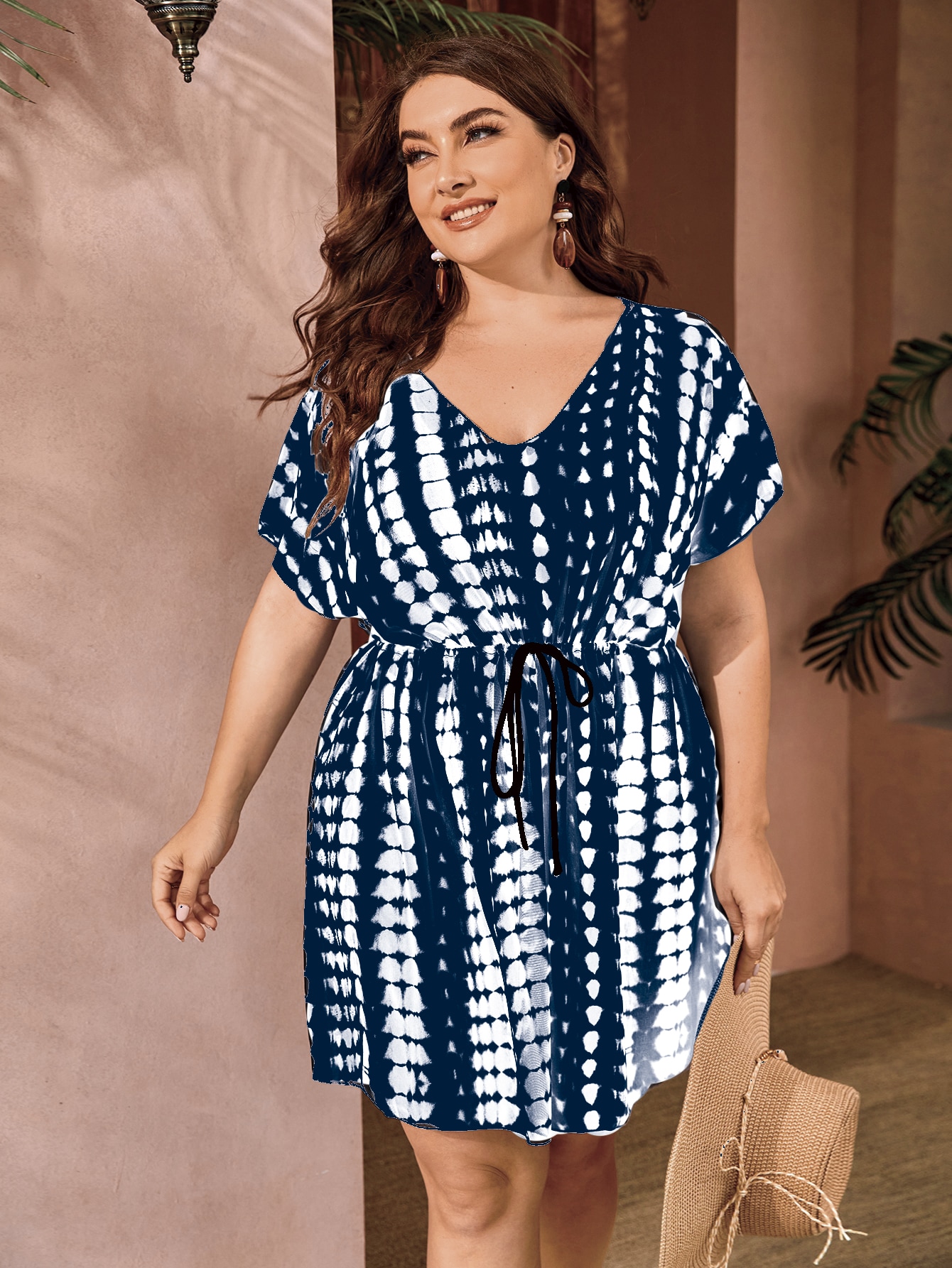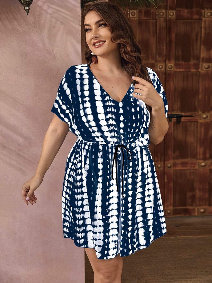 SHEIN Swim Classy Plus Tie Dye Drawstring Cover Up