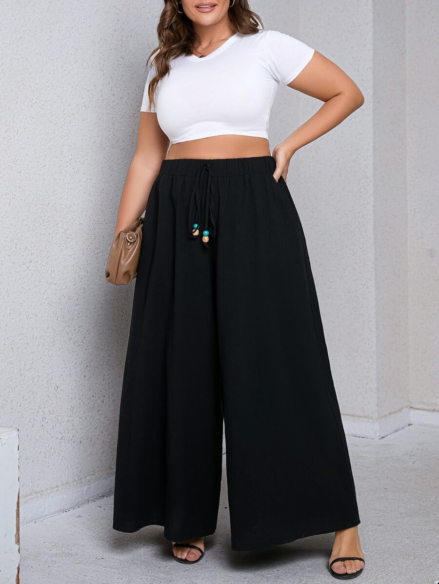 SHEIN LUNE Plus Tie Front Wide Leg Pants