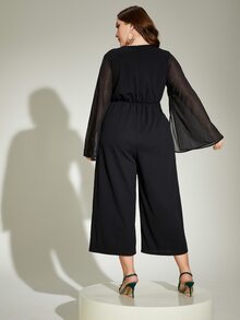SHEIN Modely Plus Trumpet Sleeve Chain Detail Jumpsuit