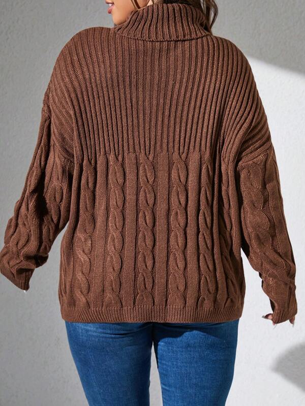 SHEIN LUNE Plus Turtleneck Cable Knit Drop Shoulder Sweater