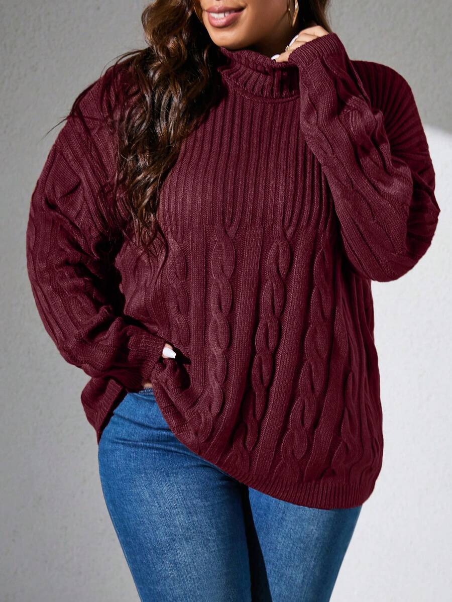 SHEIN LUNE Plus Turtleneck Cable Knit Drop Shoulder Sweater
