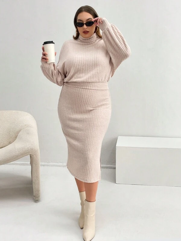 SHEIN Essnce Plus Turtleneck Drop Shoulder Top & Skirt