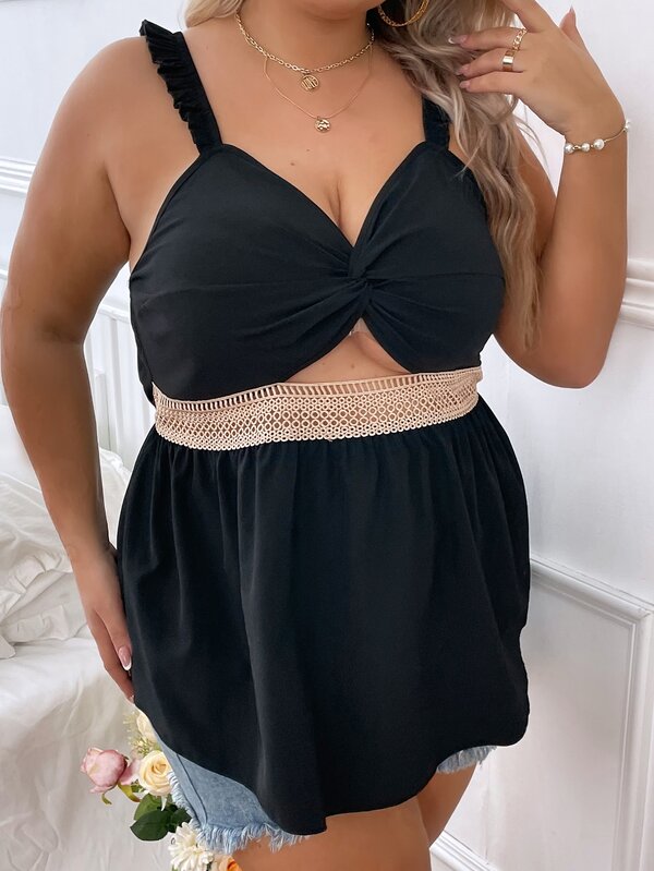 SHEIN VCAY Plus Twist Front Cut Out Lace Insert Cami Top