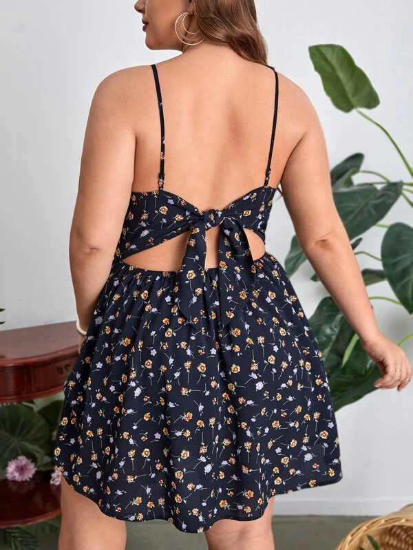 SHEIN WYWH Plus Twist Front Tie Back Floral Cami Dress