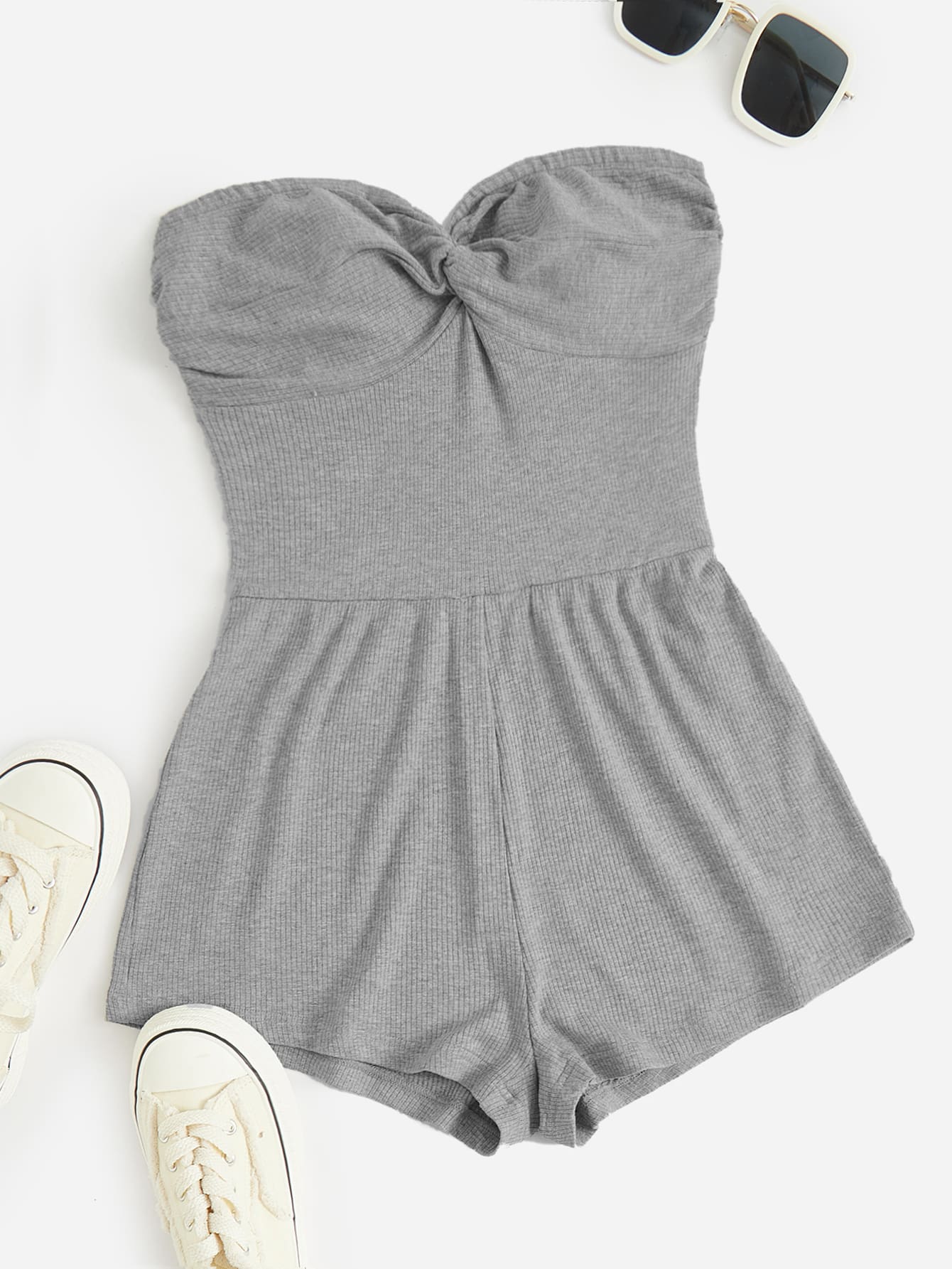 SHEIN EZwear Plus Twist Front Tube Romper