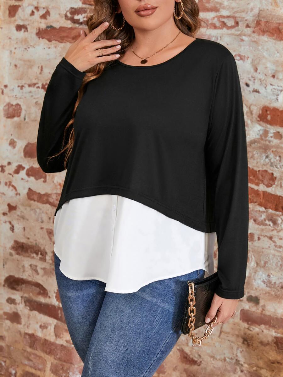 SHEIN Essnce Plus Two Tone 2 In 1 Tee
